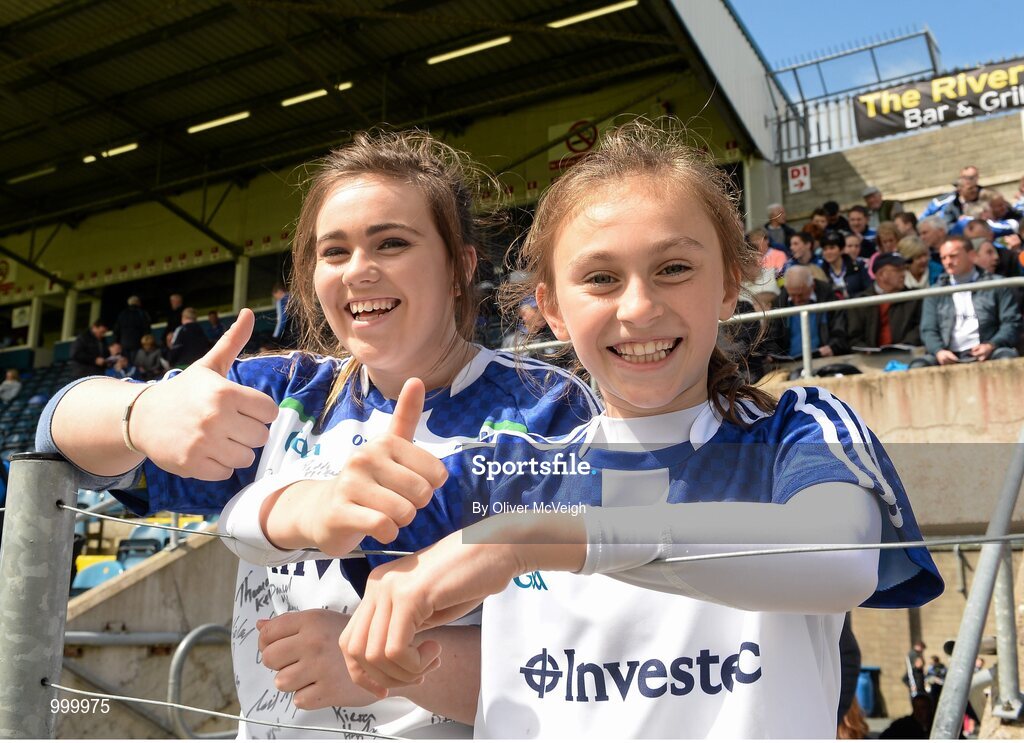 24 May 2015; Sarah and Grace Connelly, Monaghan supporters, from Carrick, Co Monaghan. Ulster GAA Football Senior Championship Quarter-Final, Cavan v Monaghan. Kingspan Breffni Park, Cavan. Picture credit: Oliver McVeigh / SPORTSFILE