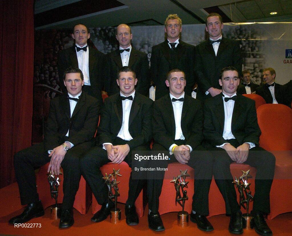 25 November 2005; Tyrone All-Stars, back row from left, Brian Dooher, Peter Canavan, Eoin Mulligan, and Stephen O'Neill. Front row, from left, Conor Gormley, Sean Cavanagh, Philip Jordan and Ryan McMenamin, at the 2005 Vodafone GAA All-Star Awards. Citywest Hotel, Dublin. Picture credit: Brendan Moran / SPORTSFILE