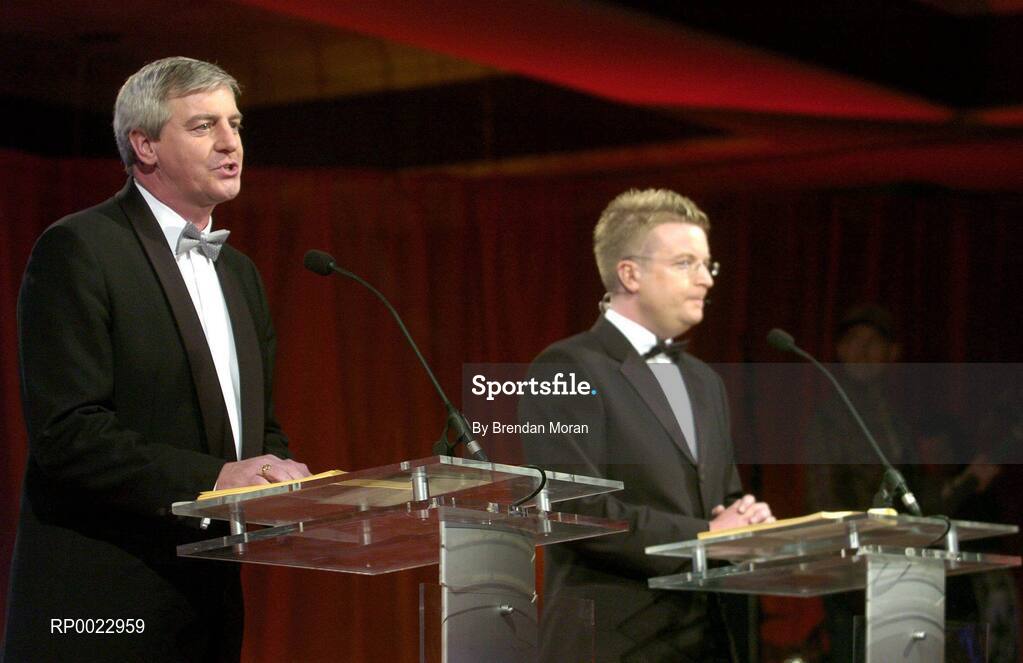 25 November 2005; MC's Michael Lyster and Darragh Maloney at the 2005 Vodafone GAA All-Star Awards. Citywest Hotel, Dublin. Picture credit: Brendan Moran / SPORTSFILE