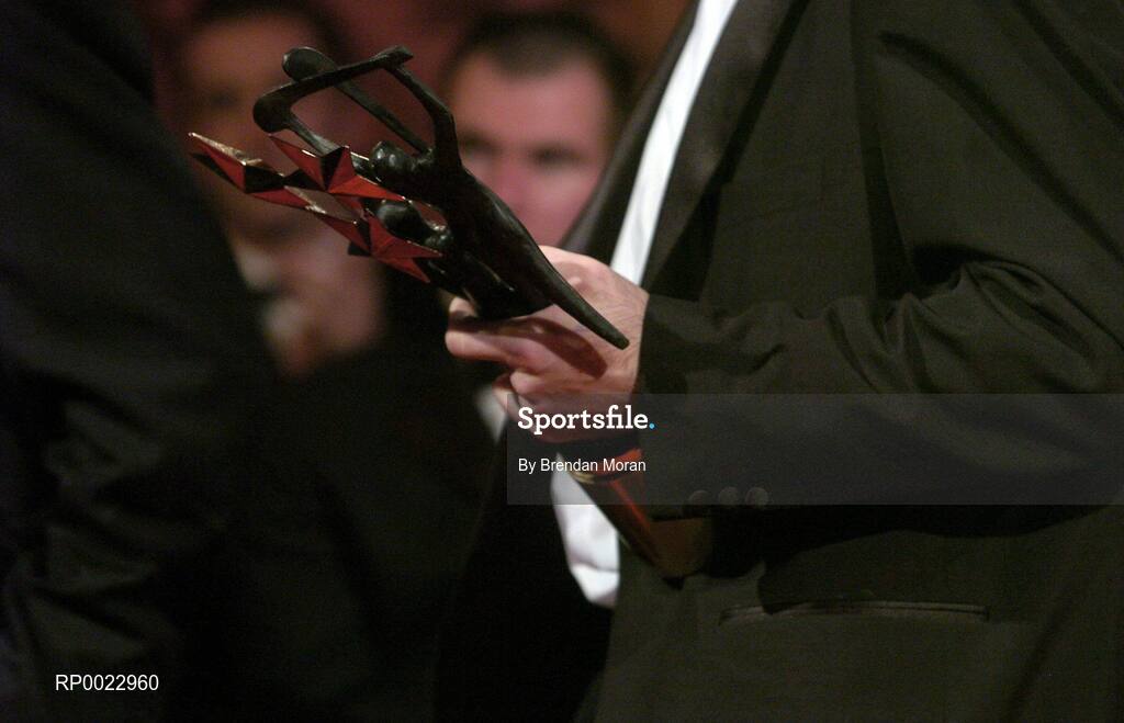 25 November 2005; A player with his All Star award at the 2005 Vodafone GAA All-Star Awards. Citywest Hotel, Dublin. Picture credit: Brendan Moran / SPORTSFILE