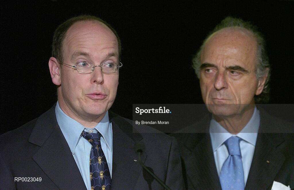 2 December 2005; HSH Prince Albert II of Monaco, in the company of Mario Pescante, President of the European Olympic Committee, speaking at the European Olympic Committee General Assembly. Four Season's Hotel, Dublin. Picture credit: Brendan Moran / SPORTSFILE