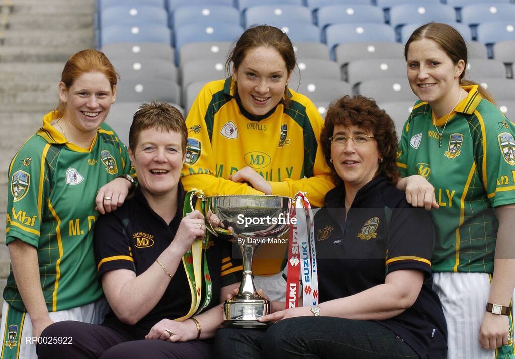 3 May 2006; Meath Ladies footballers left to right, Louise McKeever, Irene Munnelly, and Gillian Bennett, with team manager Geraldine Sheridan, front left and Maire Keane, management, at a photocall in advance of the Suzuki Ladies National Football League Finals. The Division 1 and 2 Finals take place on Saturday May 6th in Parnell Park, Dublin. The Division 1 Final, between Cork and Meath, followed by the Division 2 Final, between Kildare and Laois. The Divison 3 Finals are to be played on Sunday May 7th in Pairc Chiarain, Athlone, Co. Westmeath. The Division 3 Final Clare against Leitrim, and The Division 3B Final between Monaghan and Galway. Croke Park Dublin. Picture credit: David Maher / SPORTSFILE