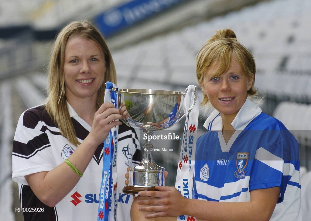 3 May 2006; Footballers, Kate Leahy, left, Kildare, and Martina Dunne, Laois, at a at a photocall in advance of the Suzuki Ladies National Football League Finals. The Division 1 Final, Cork v Meath, and the Division 2 Final, Kildare v Laois will take place on Saturday May 6th in Parnell Park, Dublin. The Divison 3 Finals, featuring Clare v Leitrim and Monaghan v Galway, are to be played on Sunday May 7th in Pairc Chiarain, Athlone, Co. Westmeath. Croke Park Dublin. Picture credit: David Maher / SPORTSFILE