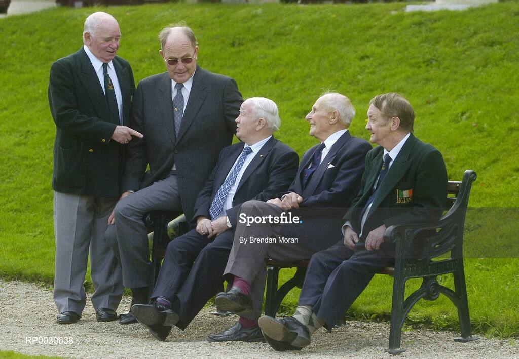 31 October 2006; Members of the 1956 Irish Olympics Team, honoured at the Association of Sports Journalists in Ireland Sporting Legends lunch, sponsored by Lucozade Sport, are, from left, Tony Socks Byrne, Pat Sharkey, Freddie Gilroy, John Sommers Payne and Johnny Caldwell. Radisson Hotel, Dublin. Picture credit: Brendan Moran / SPORTSFILE