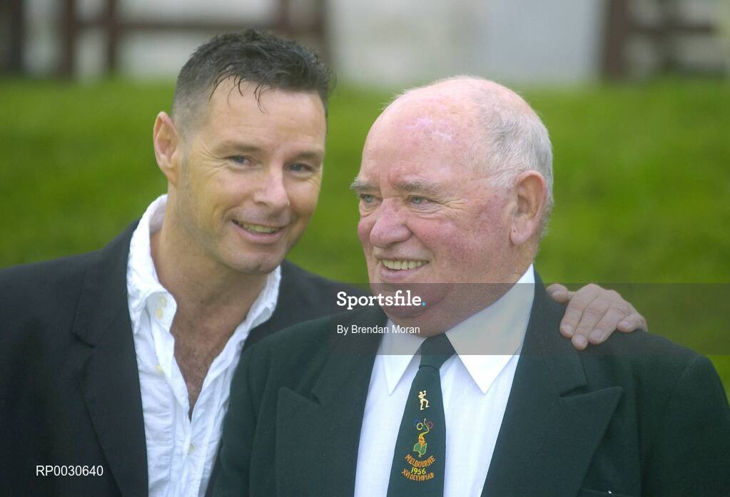 31 October 2006; Member of the 1956 Olympics Team, honoured at the Association of Sports Journalists in Ireland Sporting Legends lunch, sponsored by Lucozade Sport, is bronze medallist from that games Tony Socks Byrne in conversation with Fred Tiedt, Jnr, son of the late Fred Tiedt. Radisson Hotel, Dublin. Picture credit: Brendan Moran / SPORTSFILE