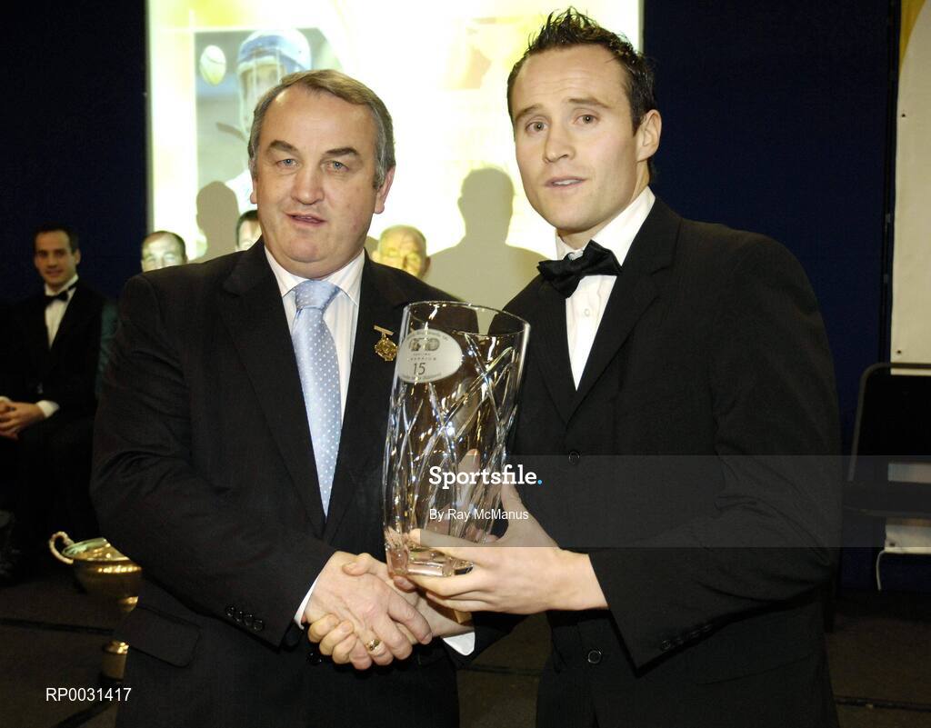 18 November 2006; Paudie Reidy, Kildare, is presented with his award by GAA President Nickey Brennan at the 2006 Christy Ring Cup "Champion 15" Awards. Croke Park, Dublin. Picture credit: Ray McManus / SPORTSFILE