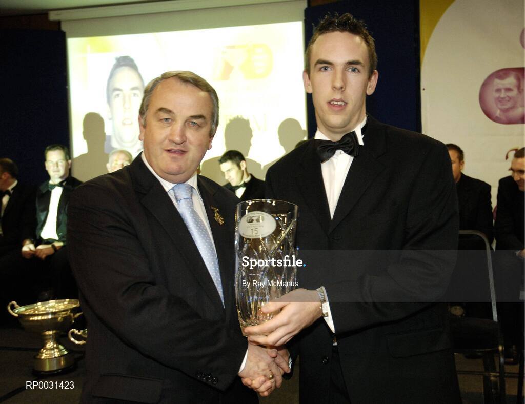 18 November 2006; Michael Kelly, Roscommon, is presented with his award by GAA President Nickey Brennan at the 2006 Christy Ring Cup "Champion 15" Awards. Croke Park, Dublin. Picture credit: Ray McManus / SPORTSFILE