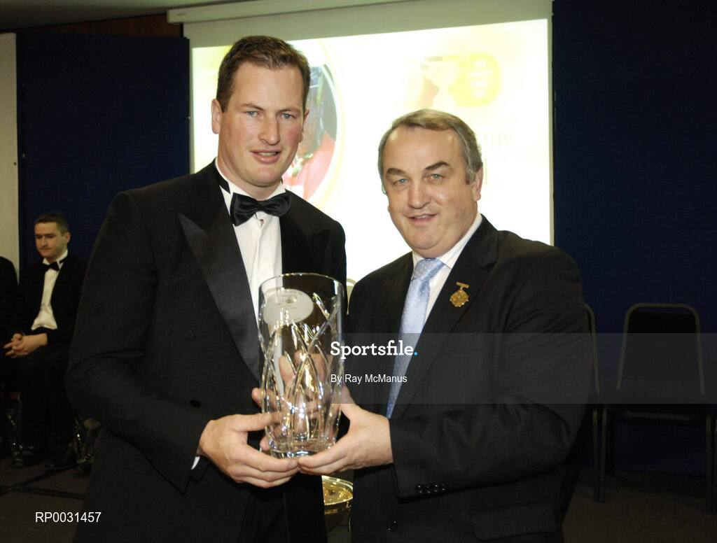 18 November 2006; Des Murphy, Carlow, is presented with his award by GAA President Nickey Brennan at the 2006 Christy Ring Cup "Champion 15" Awards. Croke Park, Dublin. Picture credit: Ray McManus / SPORTSFILE