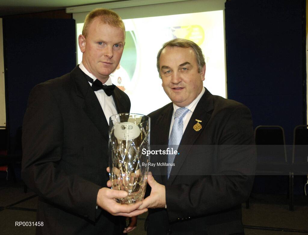 18 November 2006; Gregory Biggs, Derry, is presented with his award by GAA President Nickey Brennan at the 2006 Nicky Rackard Cups "Champion 15" Awards. Croke Park, Dublin. Picture credit: Ray McManus / SPORTSFILE