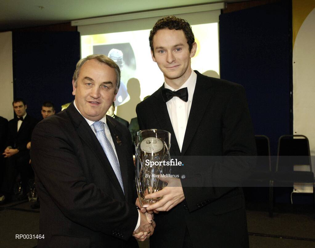18 November 2006; Michael McHugh, Monaghan, is presented with his award by GAA President Nickey Brennan at the 2006 Nicky Rackard Cups "Champion 15" Awards. Croke Park, Dublin. Picture credit: Ray McManus / SPORTSFILE