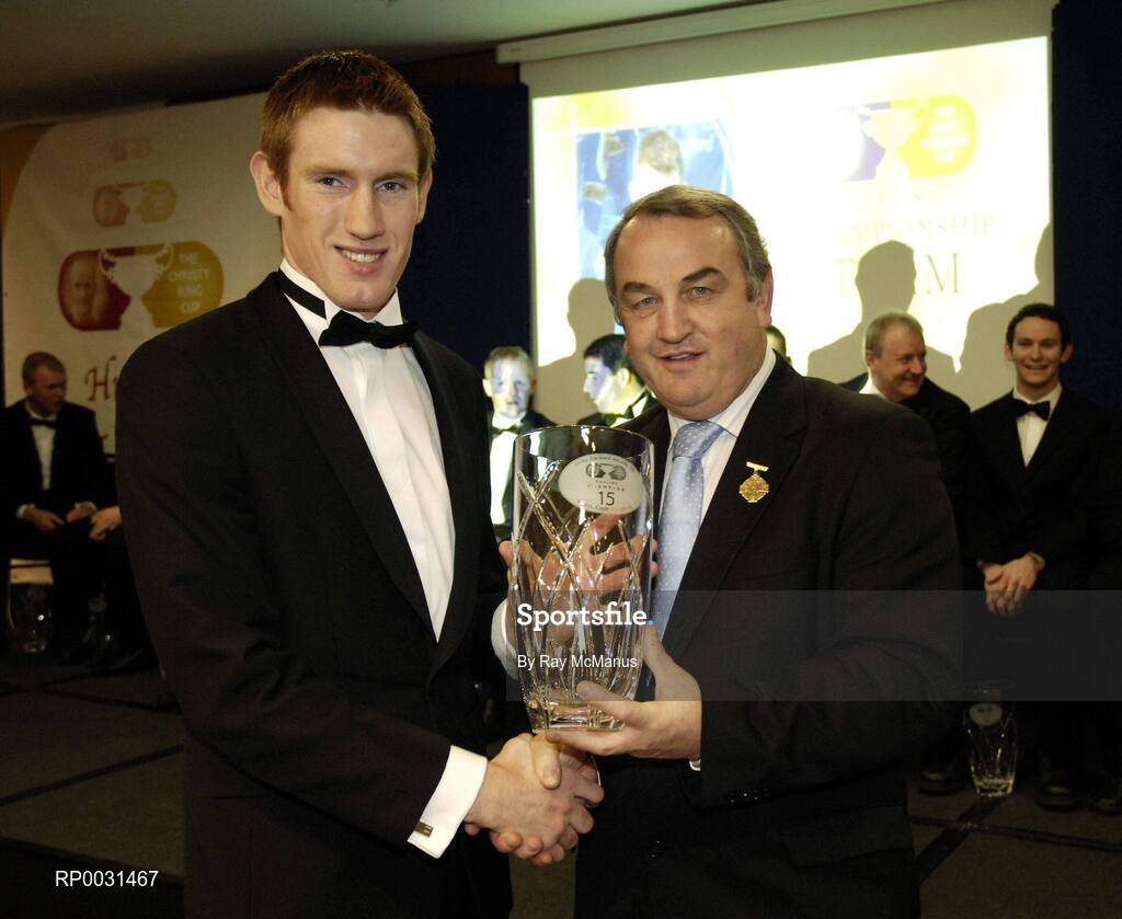 18 November 2006; Martin Coyle, Longford, is presented with his award by GAA President Nickey Brennan at the 2006 Nicky Rackard Cups "Champion 15" Awards. Croke Park, Dublin. Picture credit: Ray McManus / SPORTSFILE