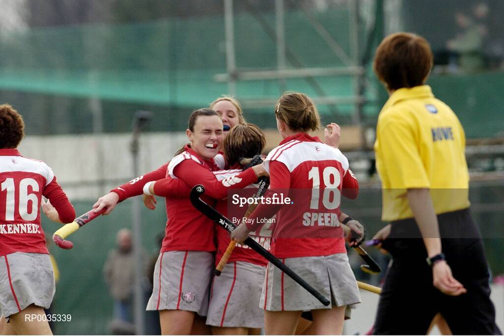 25 March 2007; Claire McMahon is congratulted by Claire McKee, left, Pegasus, after scoring her sides only goal. ESB Irish Women's Hockey Senior Cup Final, Pembroke Wanderers v Pegasus, Belfield, Dublin. Picture credit: Ray Lohan / SPORTSFILE *** Local Caption ***