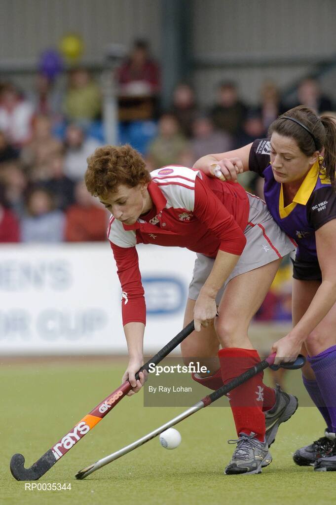 25 March 2007; Karen Kennedy, Pegasus, in action against Emily Mac Nicholas, Pembroke Wanderers. ESB Irish Women's Hockey Senior Cup Final, Pembroke Wanderers v Pegasus, Belfield, Dublin. Picture credit: Ray Lohan / SPORTSFILE *** Local Caption ***