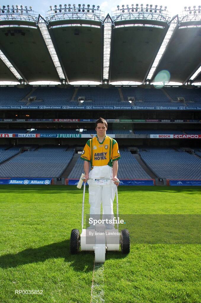 11 April 2007; Donegal footballer Kevin Cassidy helps line the pitch ahead of the League semi-finals Sunday next at the launch of the Crown Paints GAA County Colours Promotion. The Crown Paints County Colours range is a specially developed range of 32 colour schemes, each representing a county's GAA colours. GAA fans will be able to adorn their bedrooms or houses in their county colours. Croke Park, Dublin. Picture credit: Brian Lawless / SPORTSFILE