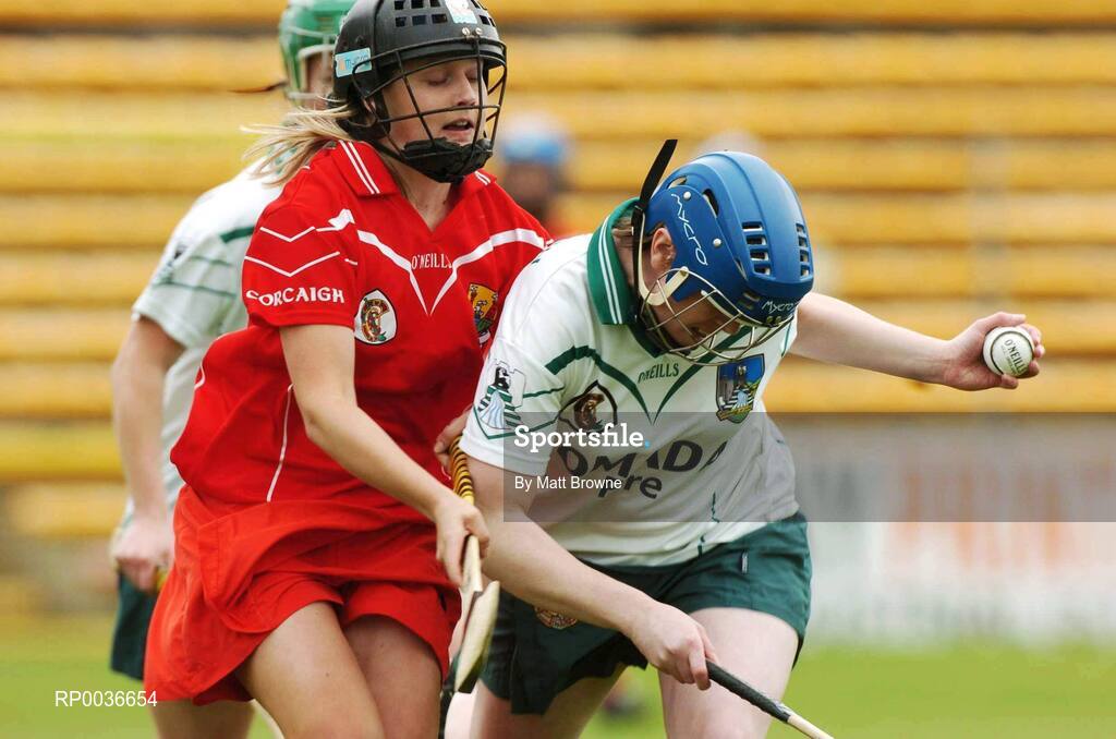 6 May 2007; Mairead Kelly, Limerick, in action against Ann Marie Fleming, Cork. Camogie National League Division 1B Final, Cork v Limerick, Nowlan Park, Co. Kilkenny. Picture credit: Matt Browne / SPORTSFILE