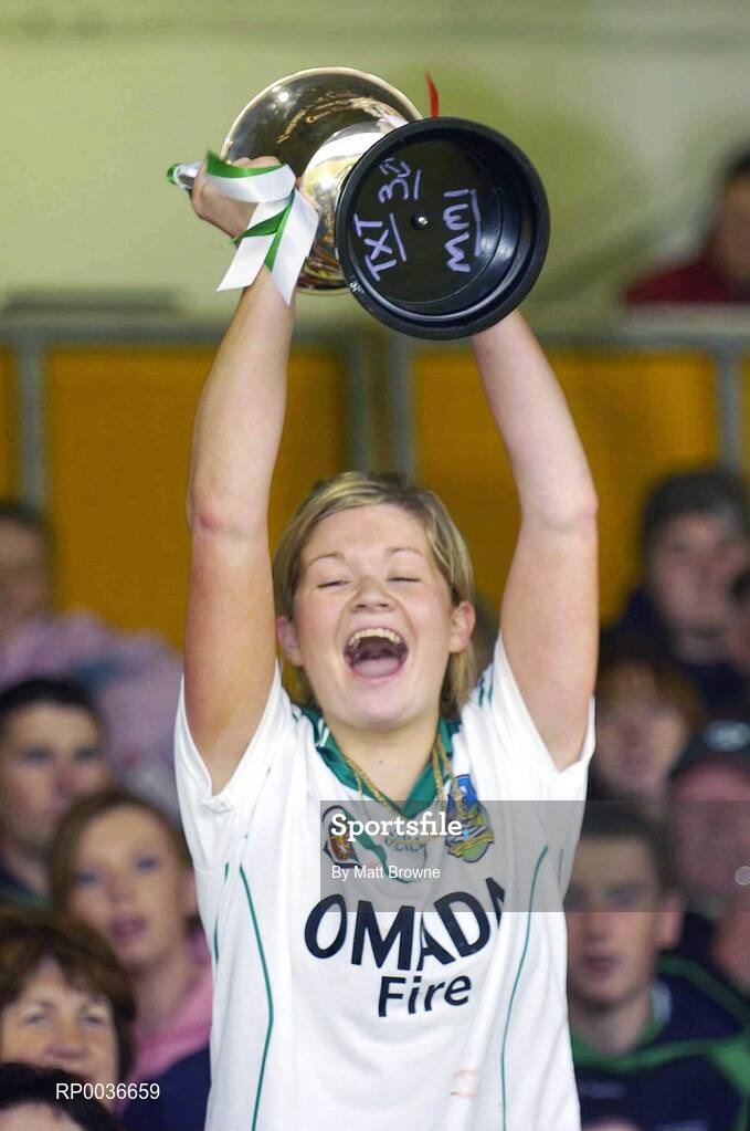 6 May 2007; Aoife Sheehan, Limerick captain, lifts the cup after their win against Cork. Camogie National League Division 1B Final, Cork v Limerick, Nowlan Park, Co. Kilkenny. Picture credit: Matt Browne / SPORTSFILE