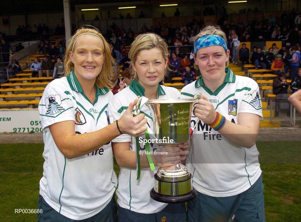 6 May 2007; Aoife Sheehan, centre, Limerick captain, with team-mates Rose Collins, left, and Marie Keating, after the win against Cork. Camogie National League Division 1B Final, Cork v Limerick, Nowlan Park, Co. Kilkenny. Picture credit: Matt Browne / SPORTSFILE