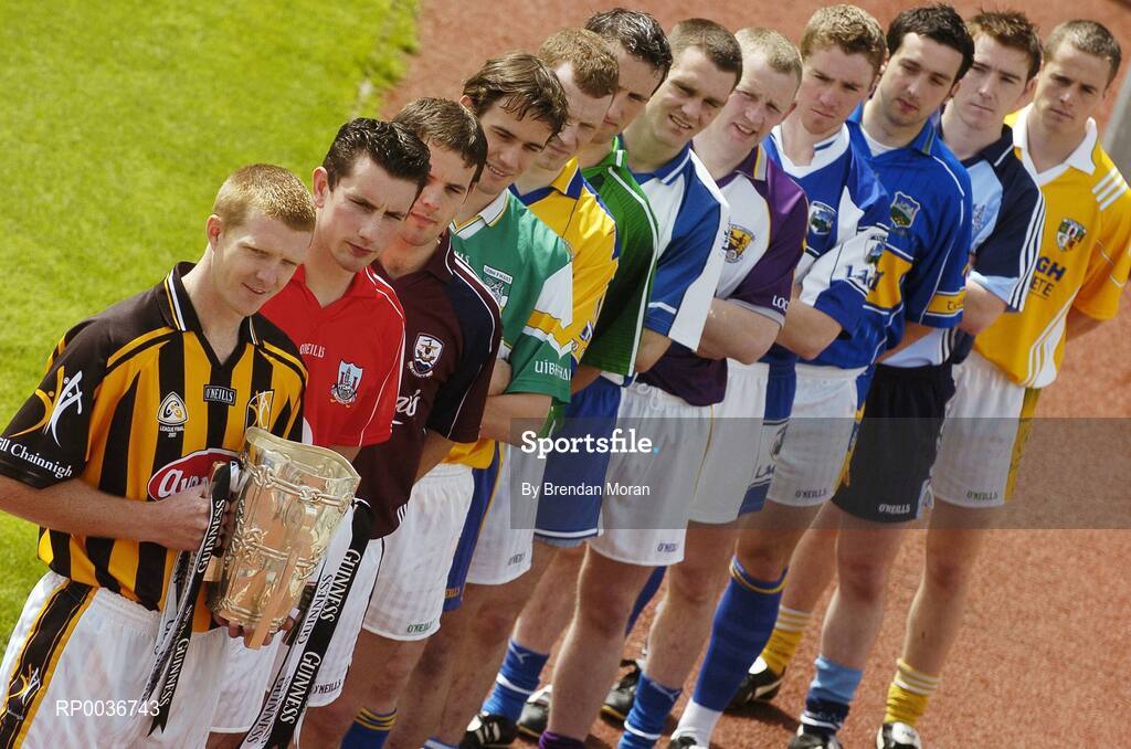 8 May 2007; Team captains, from left, Henry Shefflin, Kilkenny, Kieran Murphy, Cork, David Collins, Galway, Rory Hanniffy, Offaly, Frank Lohan, Clare, James O'Brien, Limerick, Michael Walsh, Waterford, Damien Fitzhenry, Wexford, Joe Fitzpatrick, Laois, Benny Dunne, Tipperary, Philip Brennan, Dublin, and Sean Delargy, Antrim, at the official launch of the 2007 Guinness All-Ireland Senior Hurling Championship. Croke Park, Dublin. Picture credit: Brendan Moran / SPORTSFILE