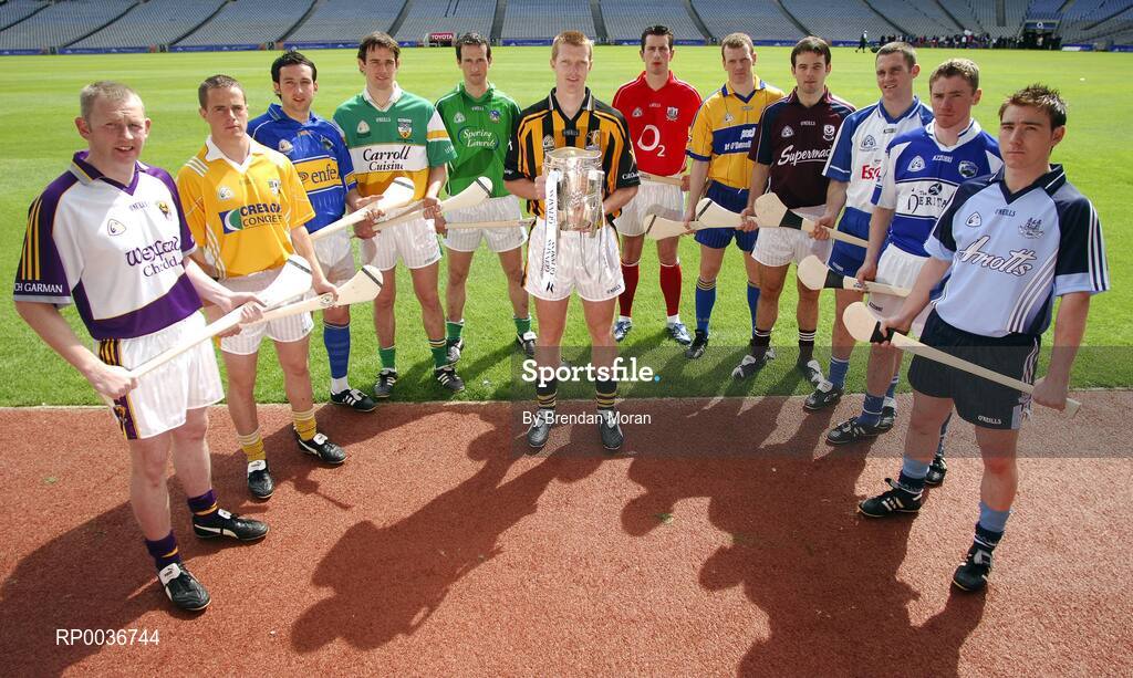 8 May 2007; Team captains, from left, Damien Fitzhenry, Wexford, Sean Delargy, Antrim, Benny Dunne, Tipperary, Rory Hanniffy, Offaly, James O'Brien, Limerick, Henry Shefflin, Kilkenny, Kieran Murphy, Cork, Frank Lohan, Clare, David Collins, Galway, Michael Walsh, Waterford, Joe Fitzpatrick, Laois, and Philip Brennan, Dublin, at the official launch of the 2007 Guinness All-Ireland Senior Hurling Championship. Croke Park, Dublin. Picture credit: Brendan Moran / SPORTSFILE