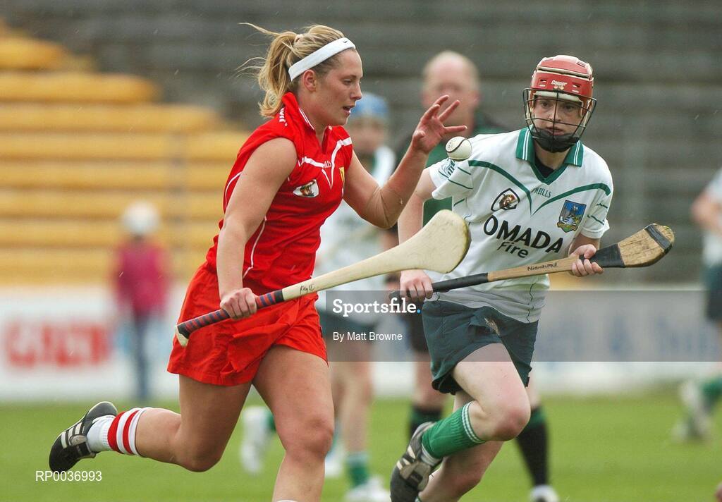 6 May 2007; Regina Curtin, Cork, in action against Niamh Mulcahy, Limerick. Camogie National League Division 1B Final, Cork v Limerick, Nowlan Park, Co. Kilkenny. Picture credit: Matt Browne / SPORTSFILE