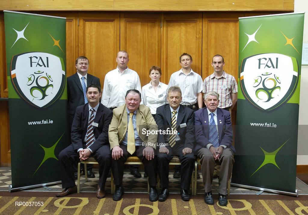 12 May 2007; Back row from left, Brian O'Regan, FAI Instructor, with Cork's Gearoid O'Brien, Jillian Mahon, Damien Klier, Paul Horgan. Front row, Paul Hamill, FAI Education Manager, Willie Brady, Chair FAI Referee Committee, Pat Kelly, Manager FAI Referee Dept. and Ignatius Martin, Registrar at the FAI School of Excellence for Referees. Radisson Hotel, Dublin Airport. Picture credit: Ray Lohan / SPORTSFILE *** Local Caption ***