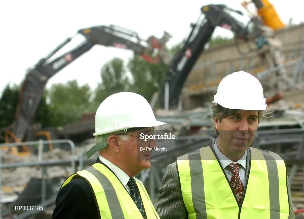 17 May 2007; John Delaney, Chief Executive of the FAI, and David Blood, President of the FAI, during a visit to Lansdowne Road Stadium before work commenced on its demolition. Lansdowne Road Stadium, Dublin. Picture credit: Pat Murphy / SPORTSFILE