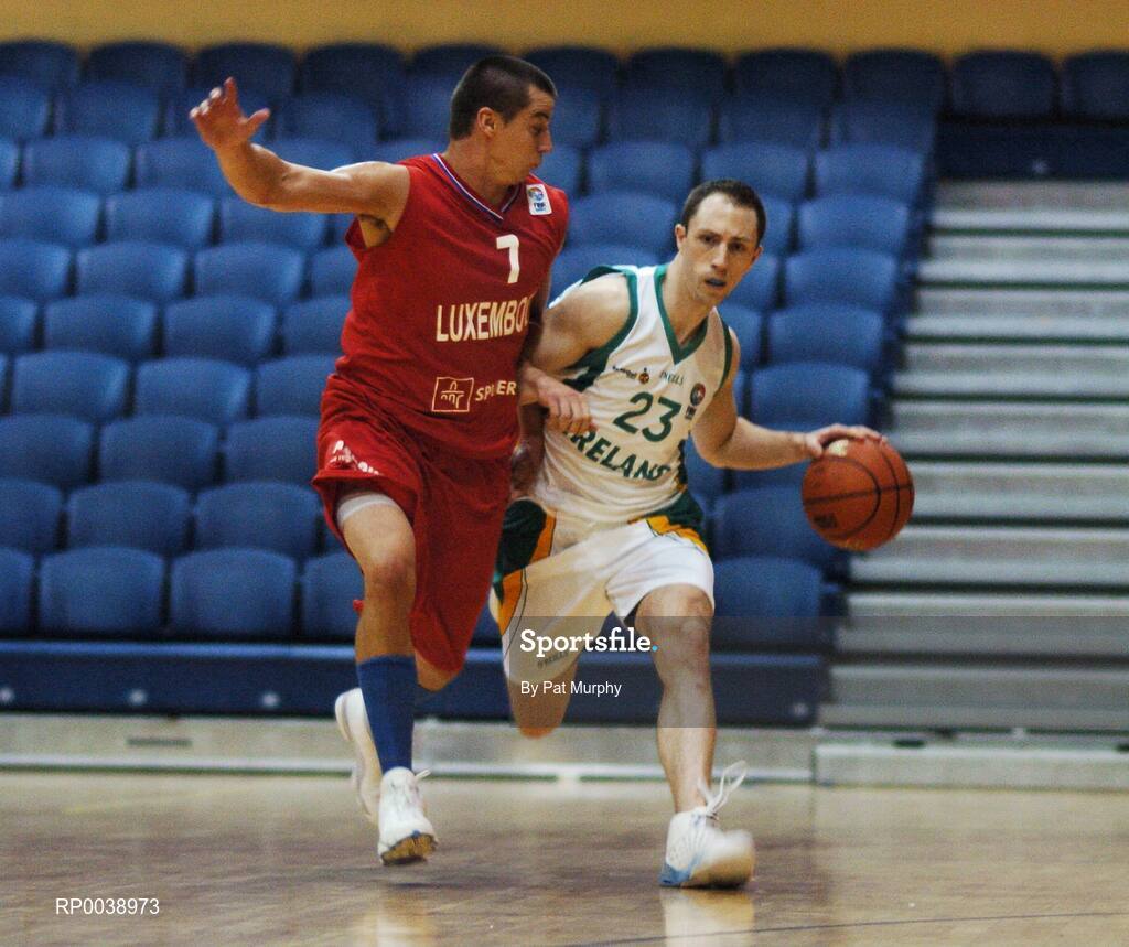 27 July 2007; Emmet Donnelly, Ireland, in action against Peter Rajmiak, Luxembourg. Men's Senior International Basketball Friendly, Ireland v Luxembourg, National Basketball Arena, Tallaght, Dublin. Picture credit: Pat Murphy / SPORTSFILE