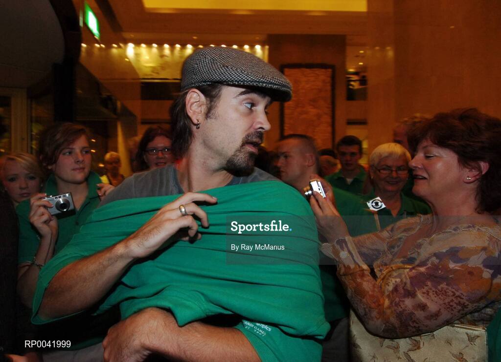 1 October 2007; Hollywood actor Colin Farrell dons a Special Olympics volunteers uniform before making a surprise visit to the reception for Special Olympic Athletes and Volunteers. 2007 Special Olympics World Summer Games, Pearl Hotel, Shanghai, China. Picture credit: Ray McManus / SPORTSFILE