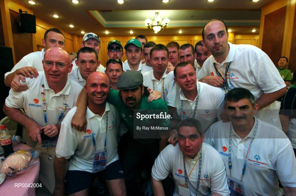1 October 2007; Hollywood actor Colin Farrell with Special Olympics athletes and coaches, who will represent Ireland in soccer, at the reception for Special Olympic Athletes and Volunteers. 2007 Special Olympics World Summer Games, Pearl Hotel, Shanghai, China. Picture credit: Ray McManus / SPORTSFILE