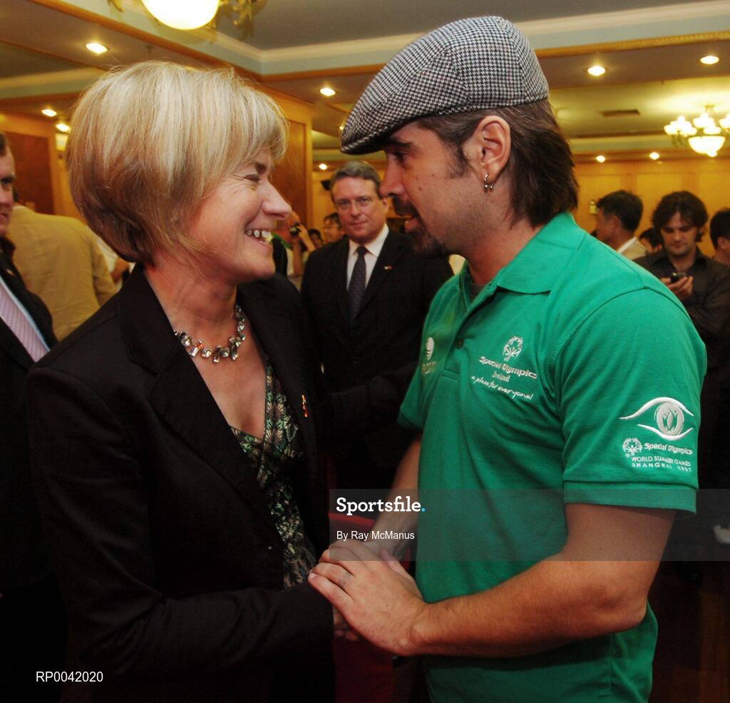 1 October 2007; Hollywood actor Colin Farrell with Mary Davis, CEO, Special Olympics Ireland, at a reception for Special Olympic Athletes and Volunteers. 2007 Special Olympics World Summer Games, Pearl Hotel, Shanghai, China. Picture credit: Ray McManus / SPORTSFILE