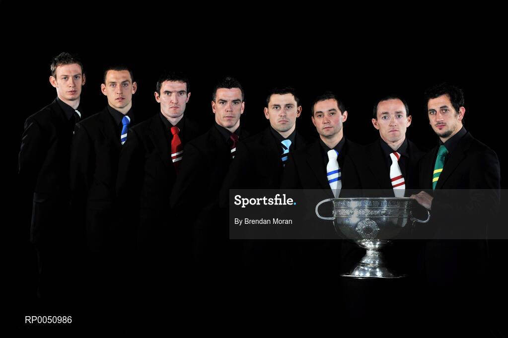 29 April 2008; At the launch of the GAA All-Ireland Senior Football Championship 2008, supported by Toyota, Vodafone and Ulster Bank, are, from left, Noel McGuire, Sligo, Darren Rooney, Laois, Graham Canty, Cork, Padraic Joyce, Galway, Alan Brogan, Dublin, Damien Freeman, Monaghan, Brian Dooher, Tyrone and Paul Galvin, Kerry. Croke Park, Dublin. Picture credit: Brendan Moran / SPORTSFILE