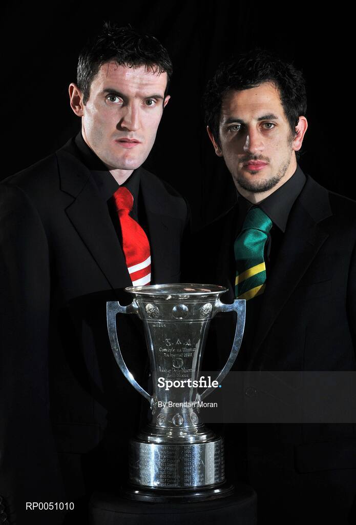 29 April 2008; At the launch of the GAA All-Ireland Senior Football Championship 2008, supported by Toyota, Vodafone and Ulster Bank, are, Cork captain Graham Canty, left, with Kerry captain Paul Galvin with the Munster Cup. Croke Park, Dublin. Picture credit: Brendan Moran / SPORTSFILE