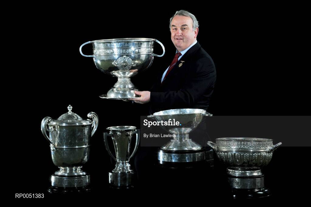 29 April 2008; GAA President Nickey Brennan with the Sam Maguire Cup and the 4 provincial cups, from left, Ulster, Munster, Connacht and Leinster, at the launch of the GAA All-Ireland Senior Football Championship 2008. Croke Park, Dublin. Picture credit: Brian Lawless / SPORTSFILE