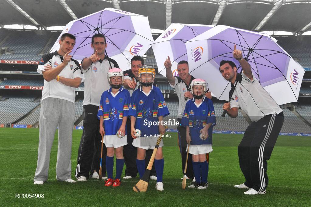 9 July 2008; The Vhi / GAA Cul Camps, the official GAA summer camps, got off to a flying start today with the launch of the Vhi Cul Camp Ambassadors. Pictured are young hurlers, from left, Sive Shelly, Lauren Franey and Saidhbh Mac Phaidin with inter-county stars and Vhi Cúl Camp Ambassadors, from left, Shane McGrath, Tipperary, Cian Ward, Meath, Shane Lennon, Louth, Leighton Glynn, Wicklow, and Karl Lacey, Donegal. The 2008 Vhi Cúl Camp Ambassadors will visit camps nationwide, giving tips to children on how to improve their game and offering the children a unique opportunity to ask them individual questions on their sport. Croke Park, Dublin. Picture credit: Pat Murphy / SPORTSFILE
