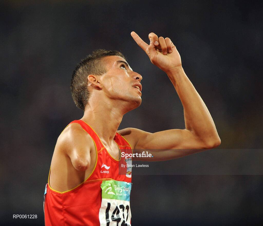 10 September 2008; Spain's Abderrahman Ait Khamouch celebrates finishing 2nd in the Men's 1500m - T46. Beijing Paralympic Games 2008, Men's 1500m - T46, National Stadium, Olympic Green, Beijing, China. Picture credit: Brian Lawless / SPORTSFILE