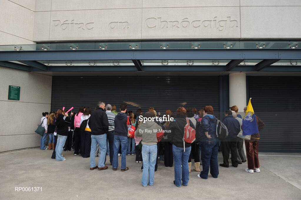 28 September 2008; Fans queue outside ahead of the game. TG4 All-Ireland Ladies Senior Football Championship Final, Cork v Monaghan, Croke Park, Dublin. Picture credit: Ray McManus / SPORTSFILE