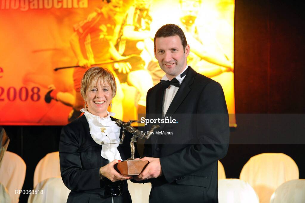 8 November 2008; President of the Camoge Association Liz Howard makes a presentation to Guest of Honour - Tipperary hurler - Brendan Cummins at the Camogie All-Star Awards 2008 in association with O’Neills, Citywest Hotel, Conference, Leisure & Golf Resort, Dublin. Picture credit: Ray McManus / SPORTSFILE