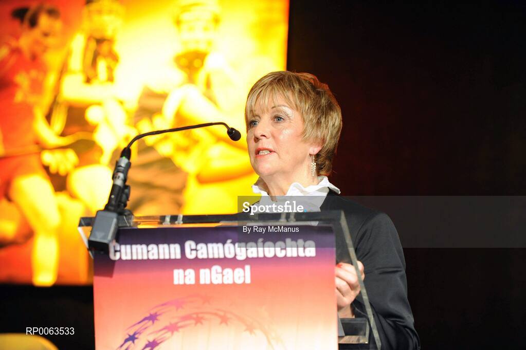 8 November 2008; President of the Camogie Association Liz Howard speaking at the Camogie All-Star Awards 2008 in association with O’Neills, Citywest Hotel, Conference, Leisure & Golf Resort, Dublin. Picture credit: Ray McManus / SPORTSFILE