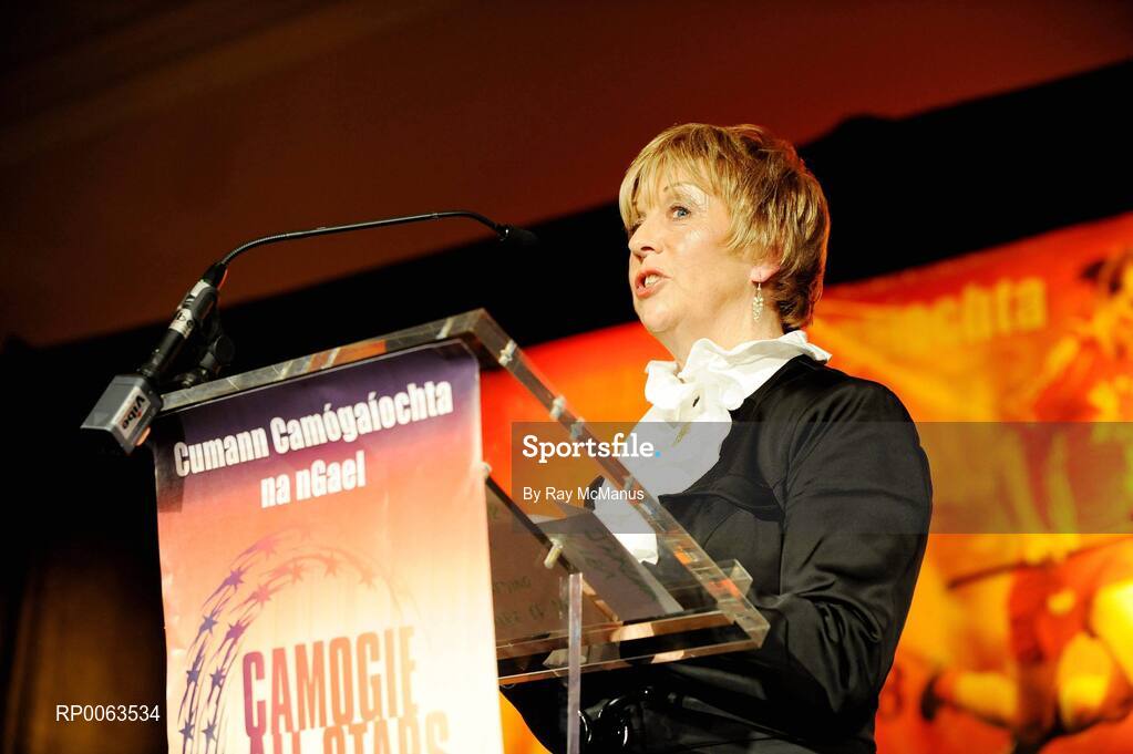 8 November 2008; President of the Camogie Association Liz Howard speaking at the Camogie All-Star Awards 2008 in association with O’Neills, Citywest Hotel, Conference, Leisure & Golf Resort, Dublin. Picture credit: Ray McManus / SPORTSFILE
