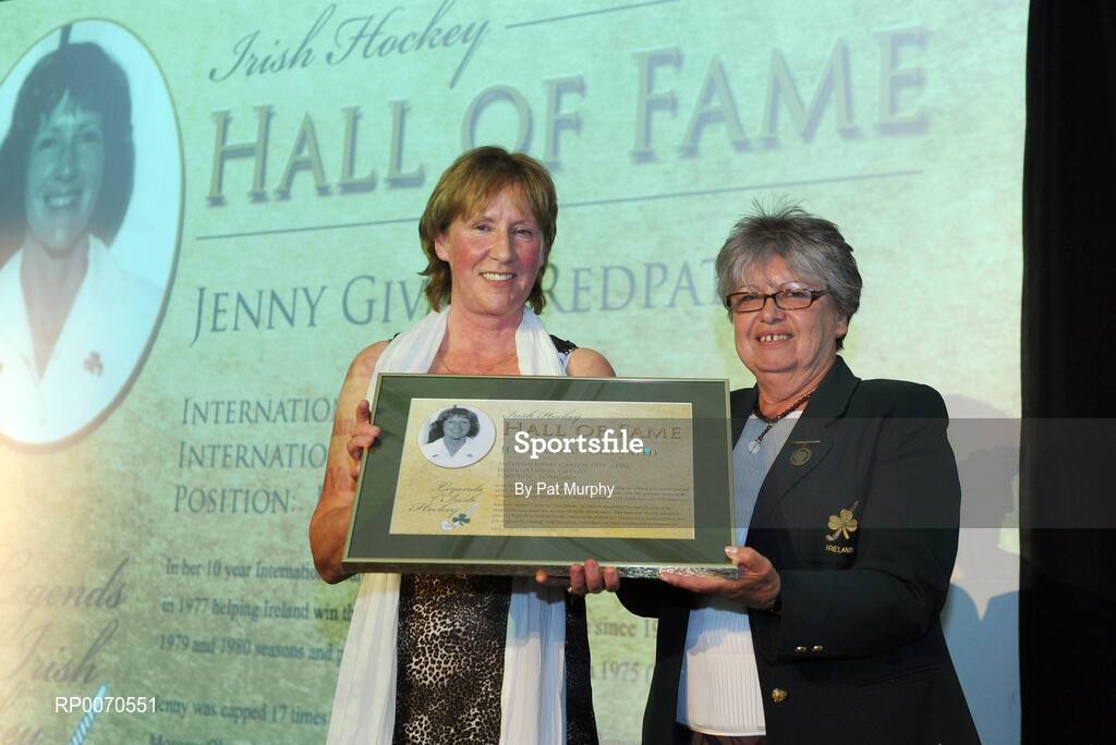 23 May 2009; Jenny Givan, Pegasus, is inducted into the Hall of Fame by IHA President Doreen Howe at the 2009 ESB Irish Hockey Awards. Burlington Hotel, Dublin. Picture credit: Pat Murphy / SPORTSFILE