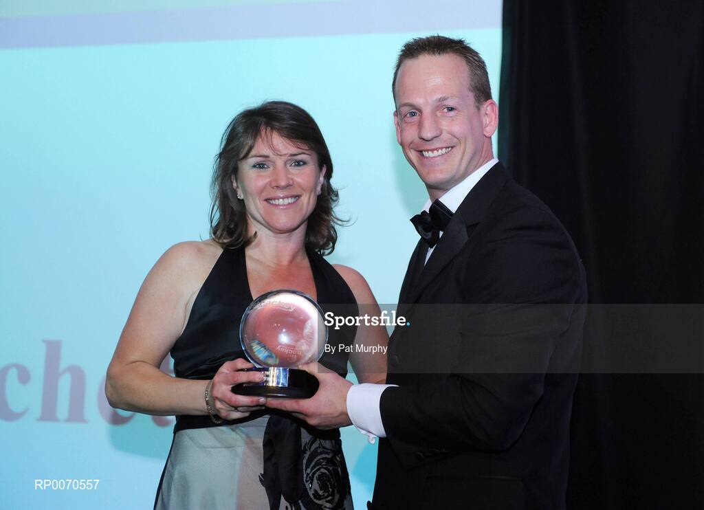 23 May 2009; Carol Metchette is presented with the Umpire of the Year award by Troy Reneker, Irish Sports Council, at the 2009 ESB Irish Hockey Awards. Burlington Hotel, Dublin. Picture credit: Pat Murphy / SPORTSFILE