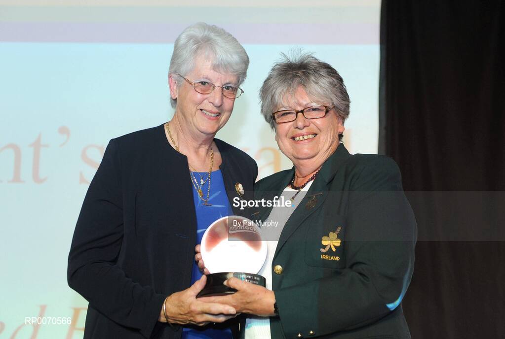 23 May 2009; Grace Redmond is presented with the President's award by IHA President Doreen Howe at the 2009 ESB Irish Hockey Awards. Burlington Hotel, Dublin. Picture credit: Pat Murphy / SPORTSFILE