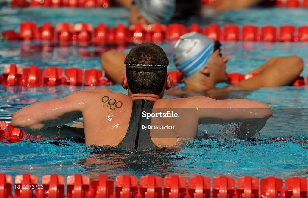 26 July 2009; A general view of a swimmer's tattoo of the Olympic rings. FINA World Swimming Championships Rome 2009, Men's 400m Freestyle, Heat 7, Foro Italico, Rome, Italy. Picture credit: Brian Lawless / SPORTSFILE