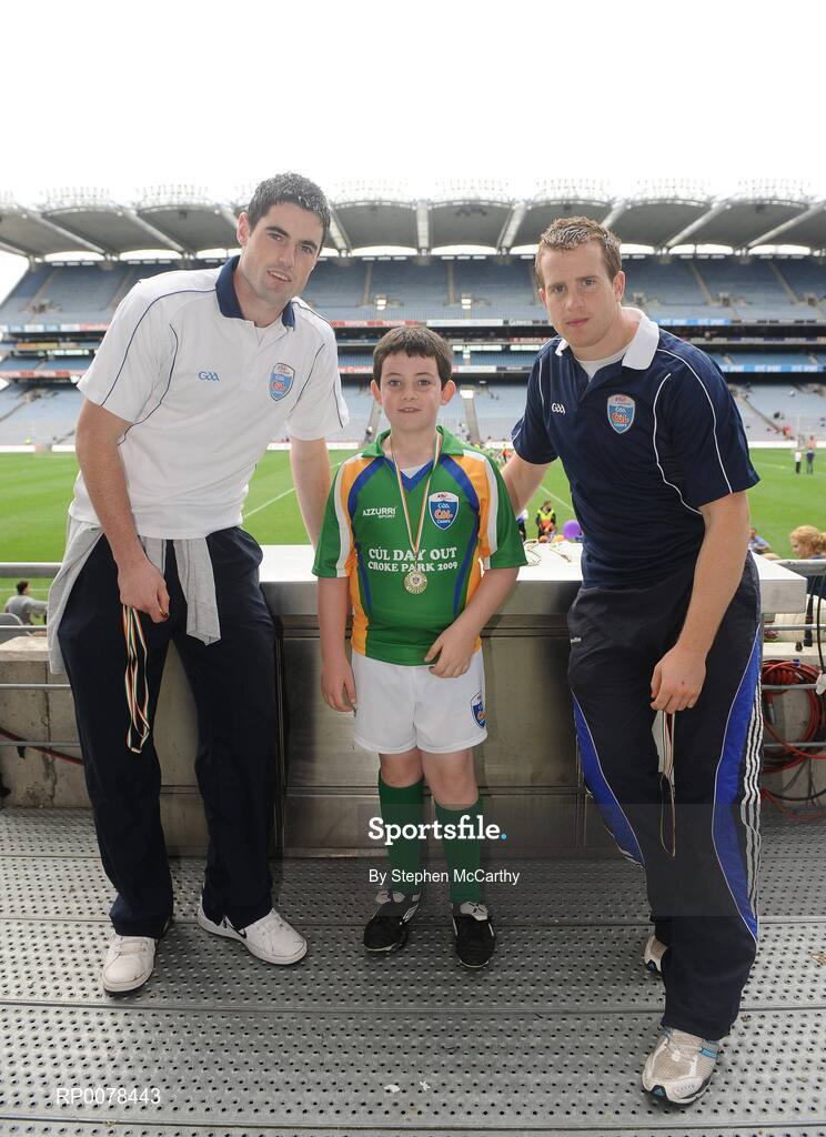 28 September 2009; 288 children from all over the country togged out today in the world-famous Croke Park stadium to attend the Vhi GAA Cúl Day Out. The 288 children were the lucky winners in the competition which was open to 82,500 children who attended a Vhi GAA Cúl Camp during the summer. Pictured after receiving his medal is Brian Gallagher, from Kilcock, Co. Kildare, with Vhi GAA Cúl Camps Ambassadors Dublin footballer Ross McConnell, left, and Cavan footballer Nicholas Walsh. Croke Park, Dublin. Picture credit: Stephen McCarthy / SPORTSFILE