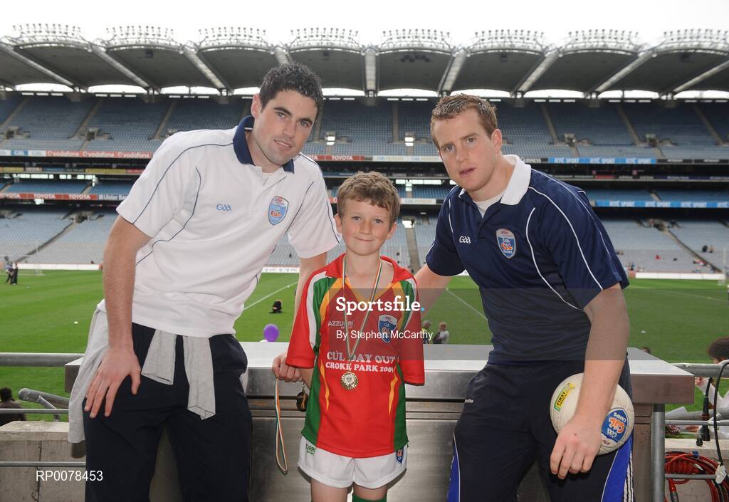 28 September 2009; 288 children from all over the country togged out today in the world-famous Croke Park stadium to attend the Vhi GAA Cúl Day Out. The 288 children were the lucky winners in the competition which was open to 82,500 children who attended a Vhi GAA Cúl Camp during the summer. Pictured after receiving his medal is Michael McGinty, Enniscorthy, Wexford, with Vhi GAA Cúl Camps Ambassadors Dublin footballer Ross McConnell, left, and Cavan footballer Nicholas Walsh. Croke Park, Dublin. Picture credit: Stephen McCarthy / SPORTSFILE
