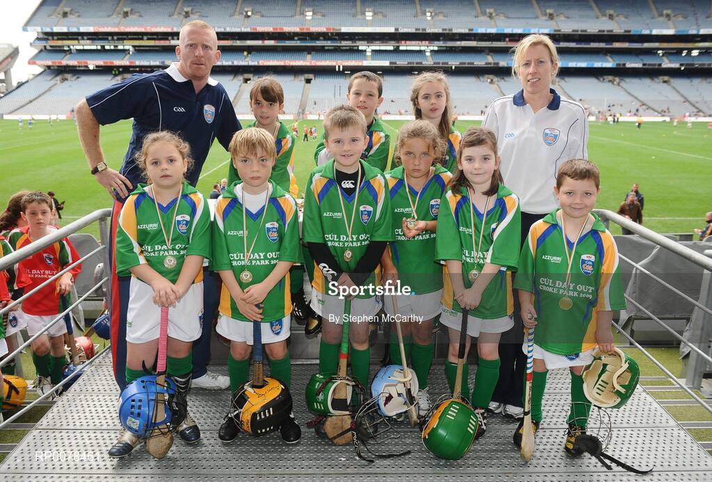 28 September 2009; Vhi GAA Cúl Day Out 2009, Waterford hurler John Mullane and Galway Camogie captain Sinead Cahalan. Croke Park, Dublin. Picture Credit: Stephen McCarthy / SPORTSFILE