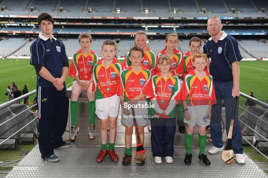 28 September 2009; Vhi GAA Cúl Day Out 2009, Dublin hurler David Treacy and Waterford hurler John Mullane. Croke Park, Dublin. Picture Credit: Stephen McCarthy / SPORTSFILE