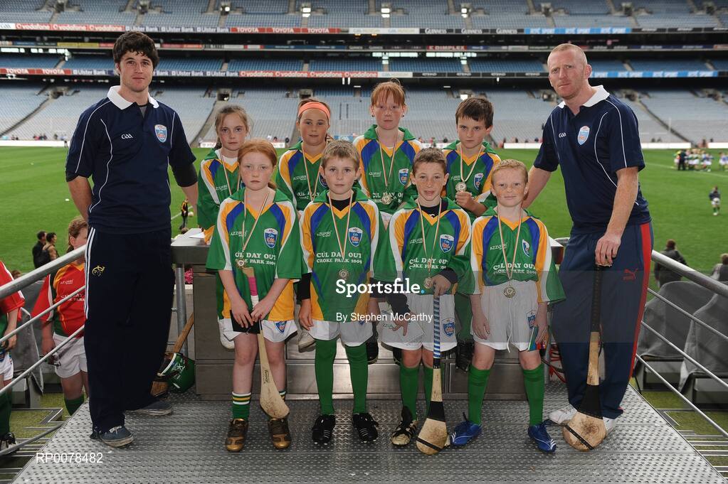28 September 2009; Vhi GAA Cúl Day Out 2009, Dublin hurler David Treacy and Waterford hurler John Mullane. Croke Park, Dublin. Picture Credit: Stephen McCarthy / SPORTSFILE