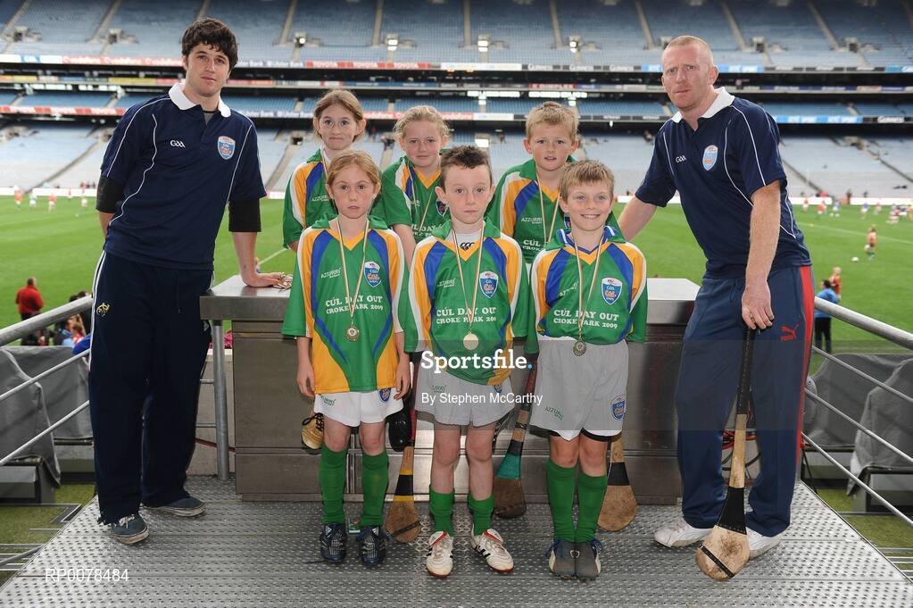 28 September 2009; Vhi GAA Cúl Day Out 2009, Dublin hurler David Treacy and Waterford hurler John Mullane. Croke Park, Dublin. Picture Credit: Stephen McCarthy / SPORTSFILE