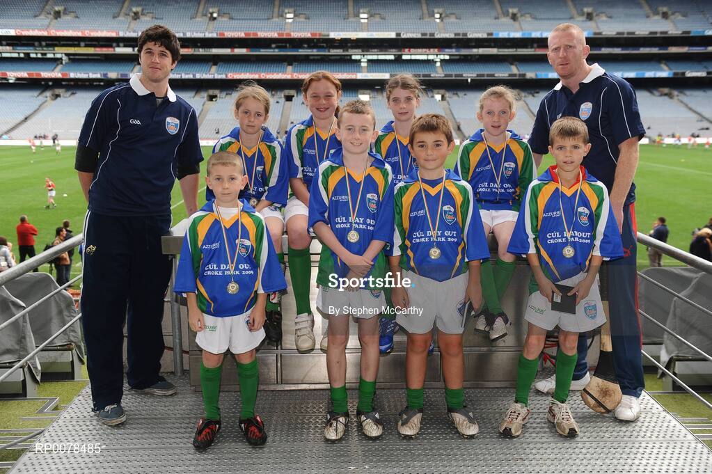 28 September 2009; Vhi GAA Cúl Day Out 2009, Dublin hurler David Treacy and Waterford hurler John Mullane. Croke Park, Dublin. Picture Credit: Stephen McCarthy / SPORTSFILE
